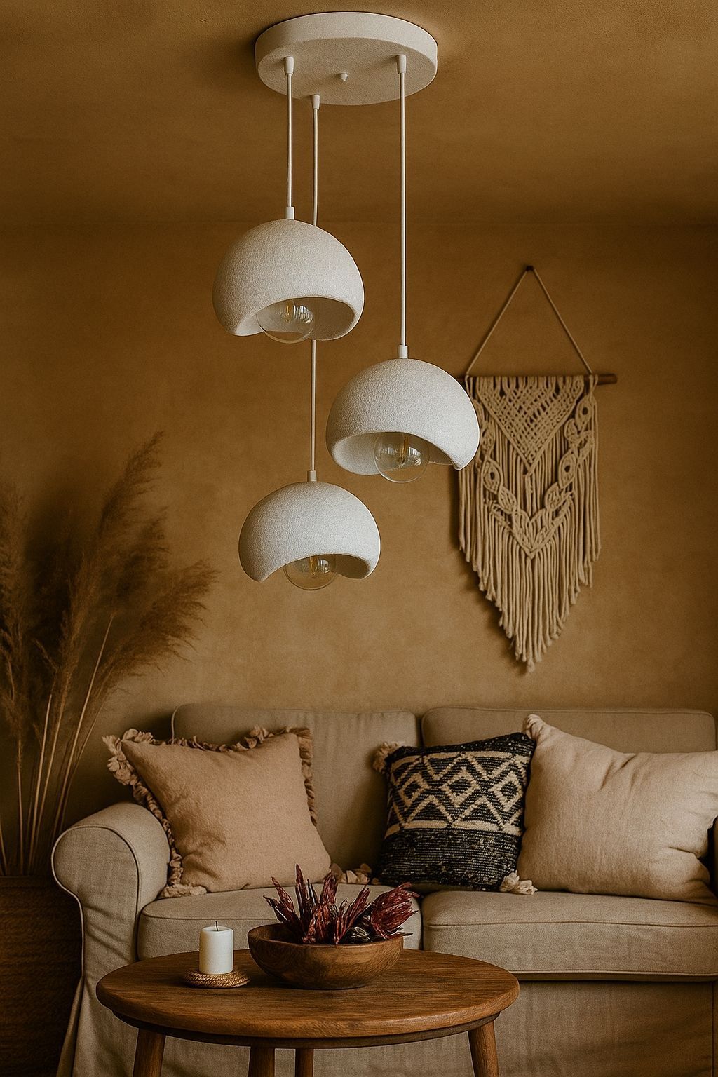 3 Lü Sarkıt Avize Rustik E27 Modern Avize Bohem Beton Görünüm 25 cm.(RUSTİK AMPUL HEDİYEDİR.!)